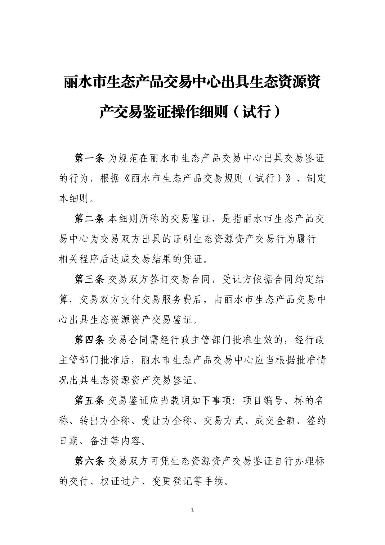 丽水市生态产品交易中心出具生态资源资产交易鉴证操作细则(试行)